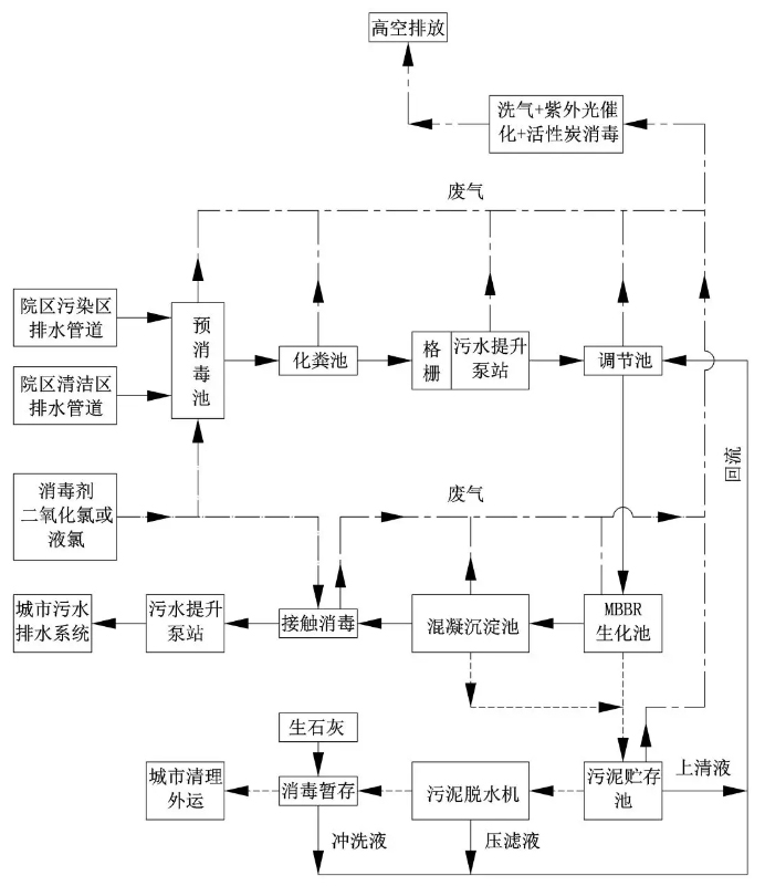 圖7 火神山醫(yī)院污水處理工藝流程