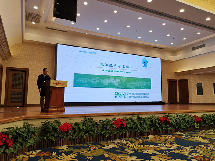 銀江環(huán)保技術(shù)總監(jiān)王敏先生代表公司做了精彩發(fā)言,現(xiàn)場交流銀江源頭活水技術(shù)。