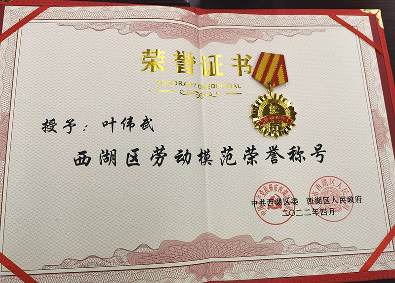 董事長(zhǎng)葉偉武榮獲西湖區(qū)勞動(dòng)模范稱(chēng)號(hào)發(fā)布日期:2022-05-10