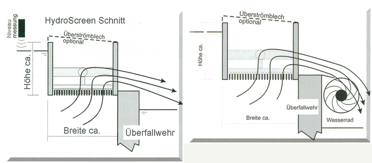 · 格柵細(xì)桿有彎曲,以便優(yōu)化水流,背側(cè)間隙能夠防止洪水或人為破壞(如異物碰撞等)造成的堵塞